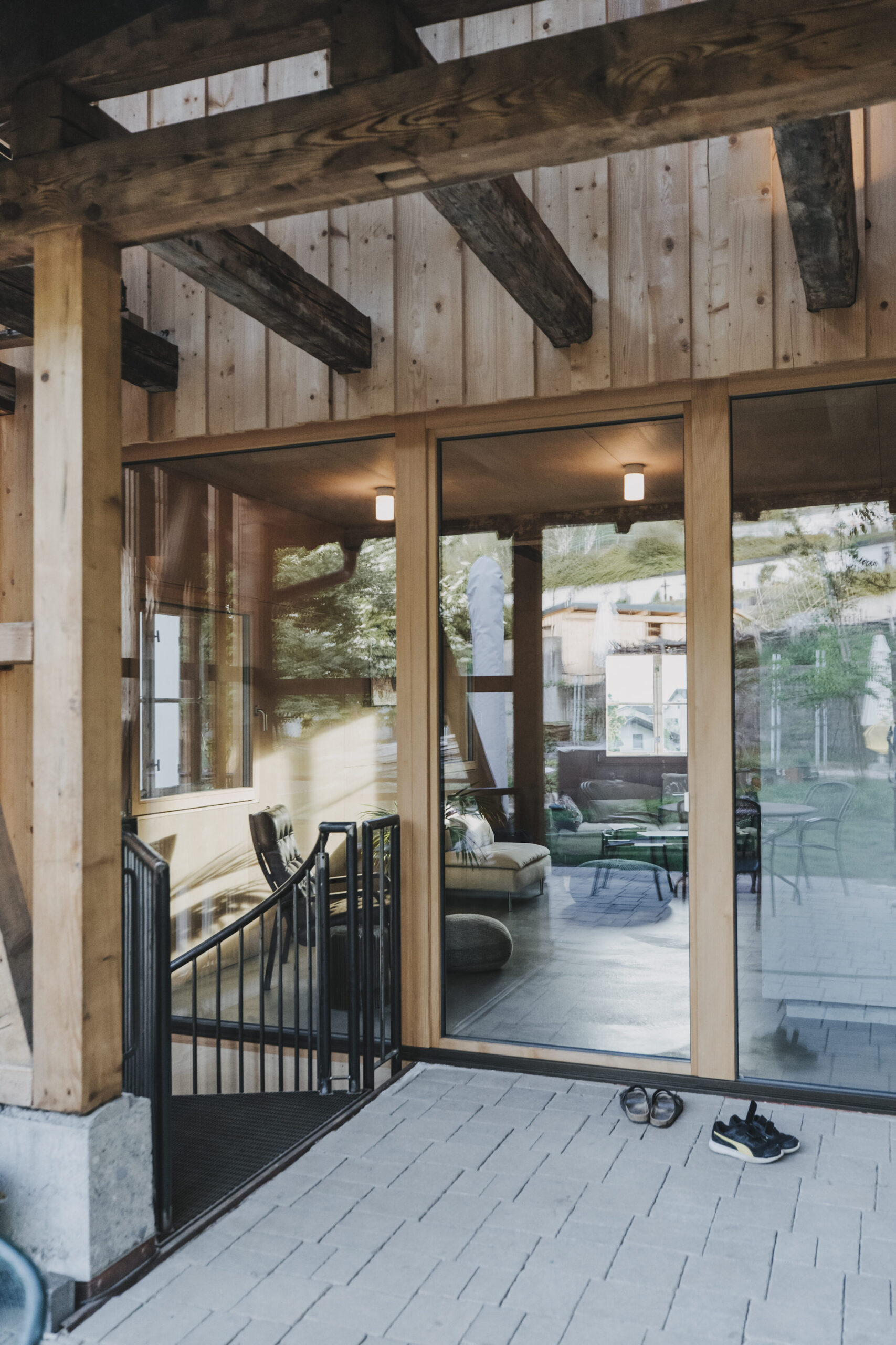 Together with the church and the building at Torkelweg 2, the building at Torkelweg 4, which was originally used as a winery and later as a carpenter’s workshop, forms a striking, old ensemble of buildings at the foot of the Röthis vineyard. The houses form a small village square in front of the former Torkel inn, which was demolished during the planning phase and replaced by a small residential complex. The village square was incorporated into the exterior design of the apartment building. Our Torkel was able to retain its original face towards the square and, despite the radical redesign, gives it a sense of stability and remembrance.